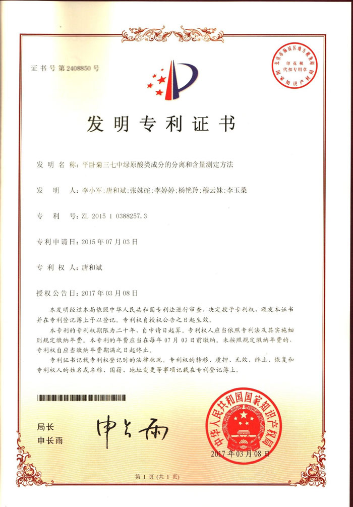 平卧菊三七 (Gynura procumbens(Lour.)Merr) 俗称帕崩板,为菊科菊三七属多 年生草本植物,药食兼用,具有广泛的药理作用,《傣医药》记载帕崩板“散瘀、消肿、活血生 肌”,在我国周边的东南亚民族地区,它还用于降糖降脂、抗肝癌、解脏毒和保护肠道。民间 常将嫩茎叶作蔬菜食、作茶饮,作为新食品原料 ( 原卫生部公告 2012 年第 8 号 ),其在广东、 江西等地有规模化的种植。已知成分包括绿原酸......查看详情